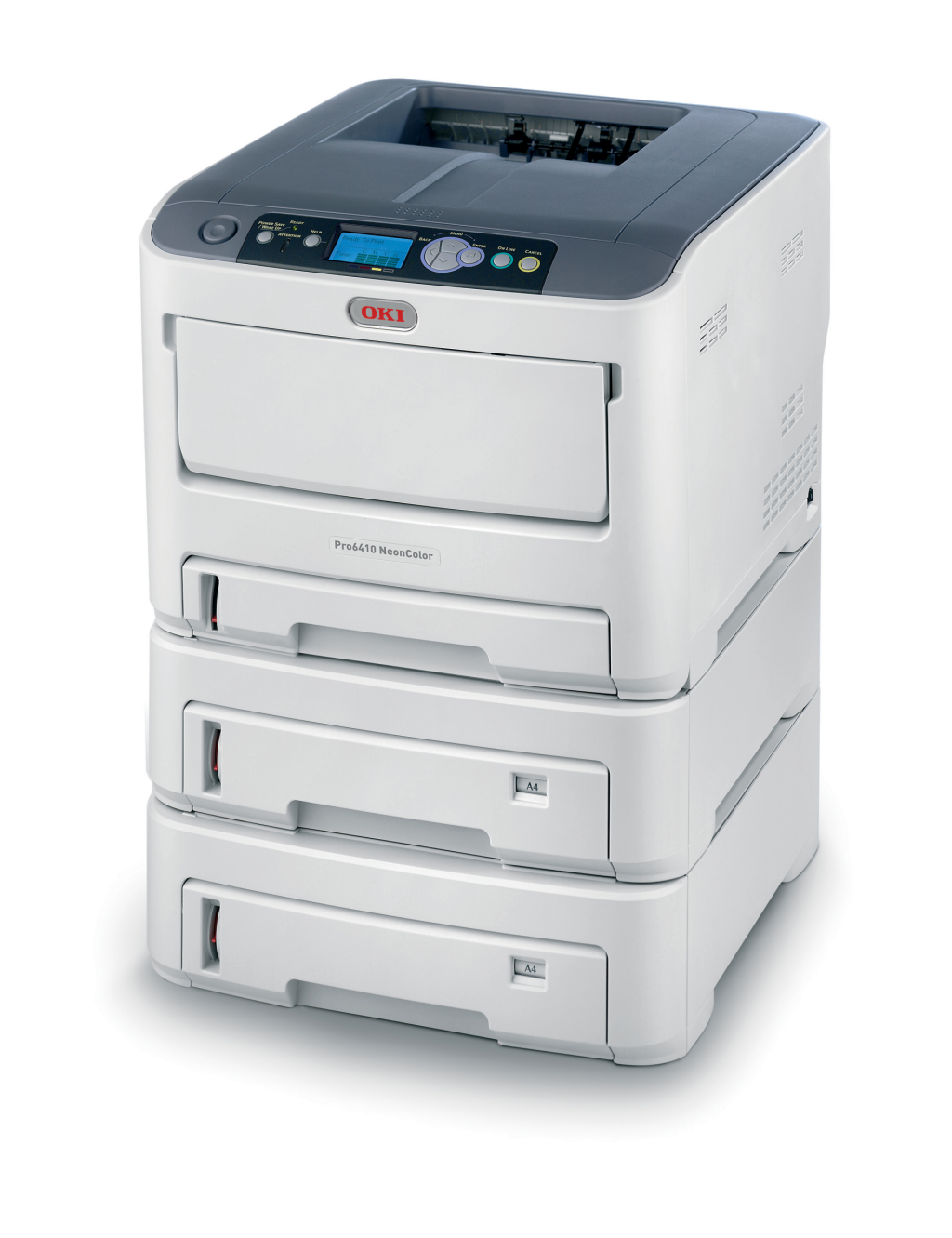 A revolutionary addition to OKI’s colour printer range, the Pro6410 NeonColor for the first time allows graphic arts departments and creative businesses to print free of the limitations of the standard CMY colour spectrum. Delivering fast return-on-investment, the Pro6410 NeonColor combines High Definition LED colour printing with ground breaking neon toner technology, and interchangeable black or white toner to enable dazzling design capability from a compact reliable printer.
